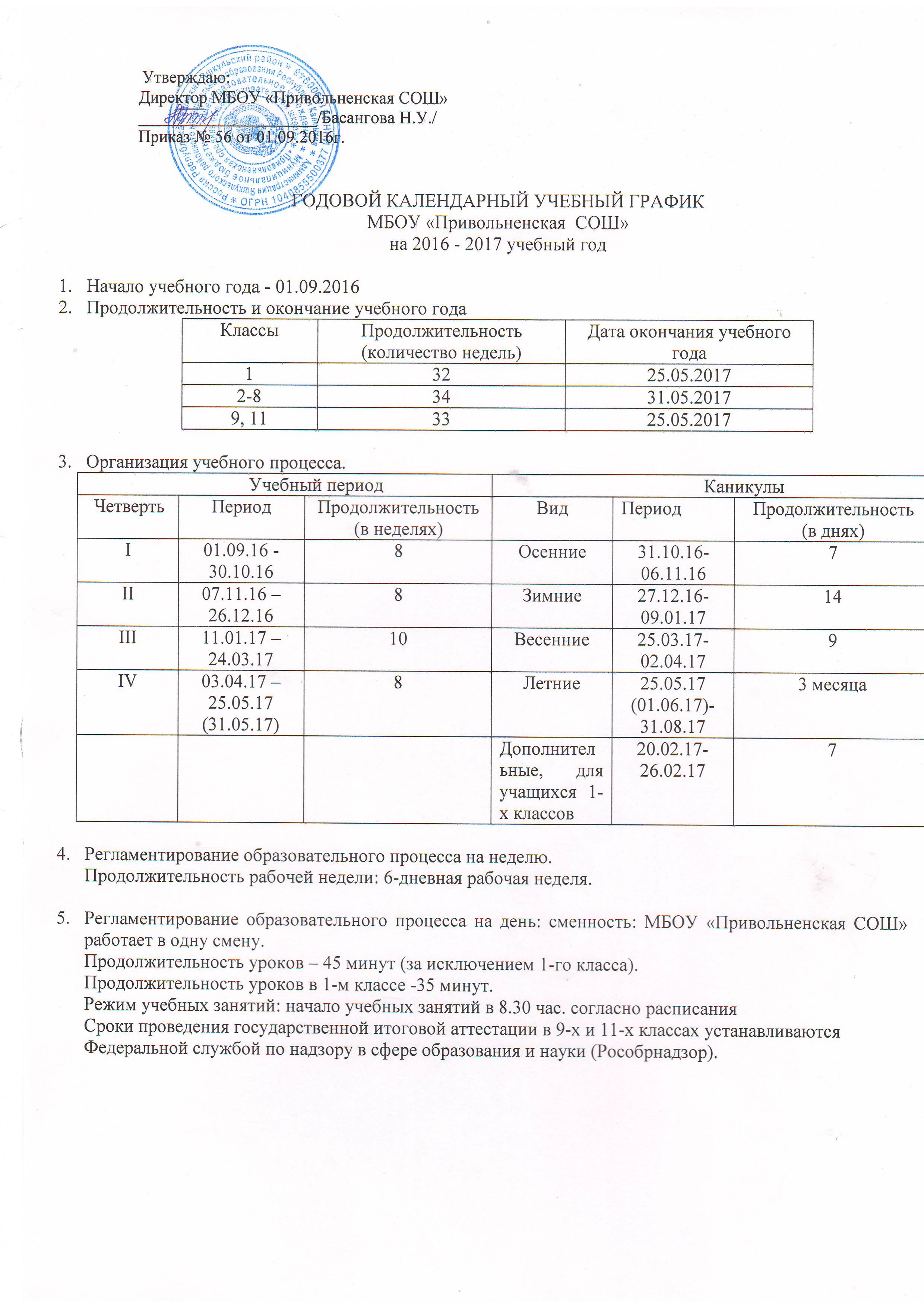 График работы: